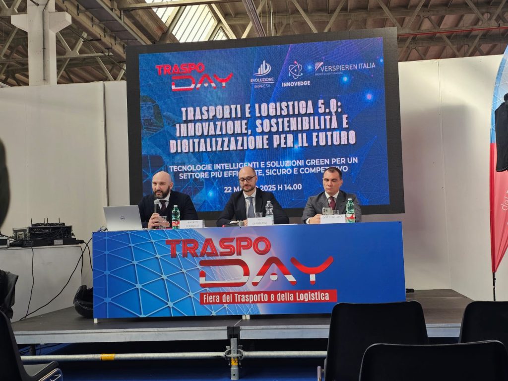 Il 23 marzo 2025 abbiamo partecipato con entusiasmo al TraspoDay, la fiera nazionale dedicata al mondo del trasporto e della logistica. Il nostro Innovation Manager Settimio Cembrola insieme a due professionisti di grande esperienza – il Dott. Emanuele De Luca e Francesco D’Angelo – ha analizzato il futuro del settore alla luce delle sfide e delle opportunità dell’innovazione tecnologica.