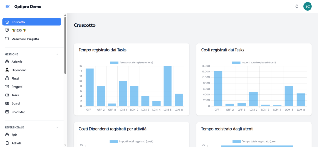 OptiPro è la piattaforma innovativa che rivoluziona la gestione aziendale, integrando le tecnologie più avanzate per supportarti nella crescita e nella sostenibilità del tuo business. Con OptiPro, hai tutto ciò di cui hai bisogno per migliorare ogni aspetto della tua attività