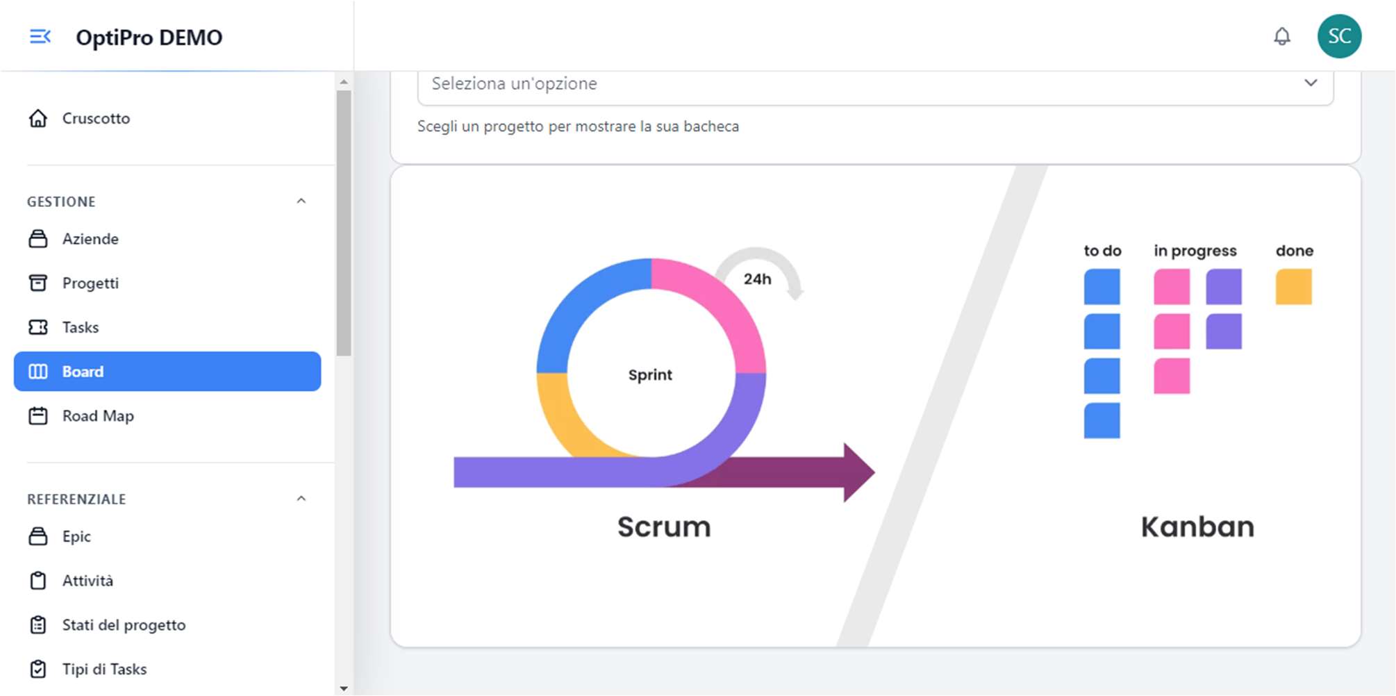 Visualizza il progresso dei tuoi progetti con strumenti avanzati come Road Map, Board Kanban e dashboard interattive.